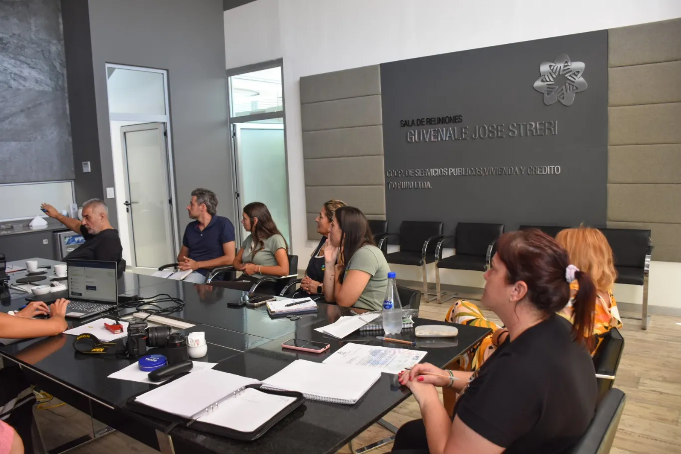 Participaron de la reunión: Daniela Andrea Presuttari (Secretaria). Stefanía Bechis y Milena Bertea (Recursos Humanos). Sylvia Falcés (Asesora legal). Gustavo Martinotti (Arquitecto de la obra). Lucrecia Falco (Gestión deportiva). Sebastián Panero (Prensa).