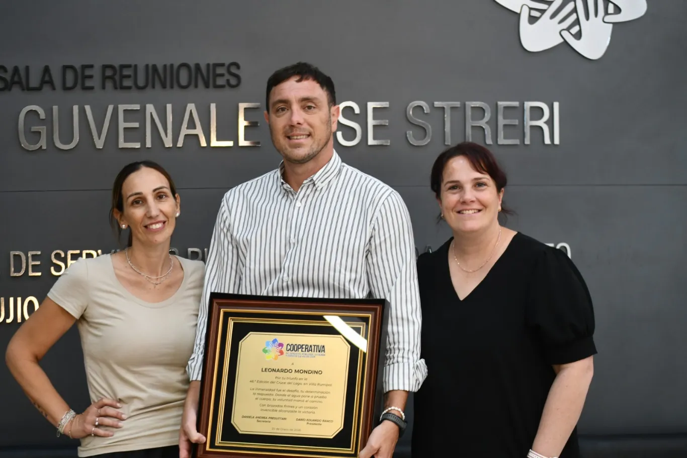 El acto tuvo lugar en la sala de reuniones, donde Mondino recibió una plaqueta conmemorativa de manos de la secretaria del Consejo de Administración, Daniela Andrea Presuttari, y la consejera Yanina Andrea Perachia, en un gesto de reconocimiento al esfuerzo, la disciplina y el compromiso deportivo que representa su logro.