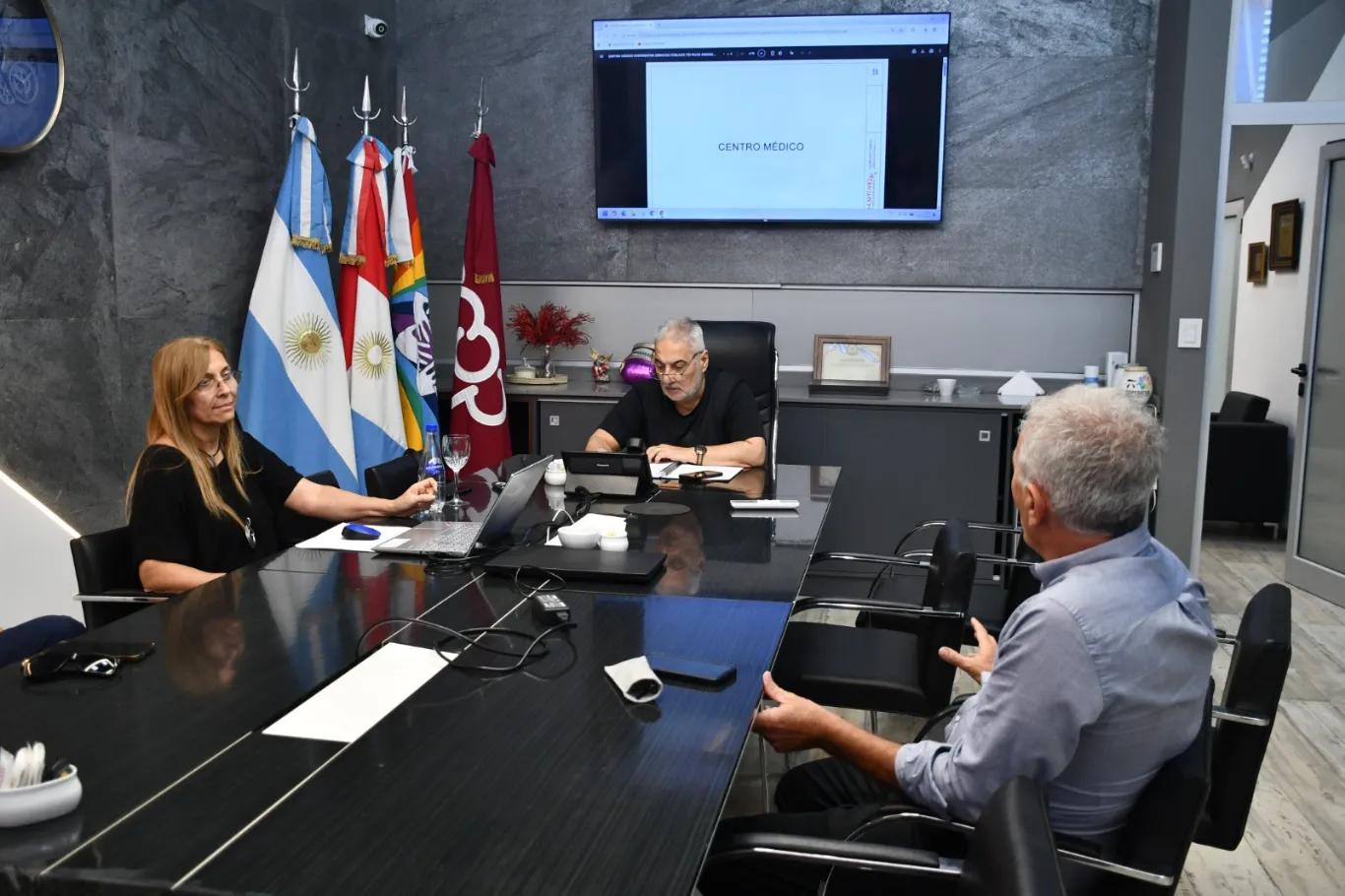 Del encuentro participaron el doctor Juan Carlos Zazzetti, director del proyecto; Miriam Figueroa, representante de la empresa de arquitectura hospitalaria HOSPITARQ; y Matías Blanco, de la firma MACE SRL.