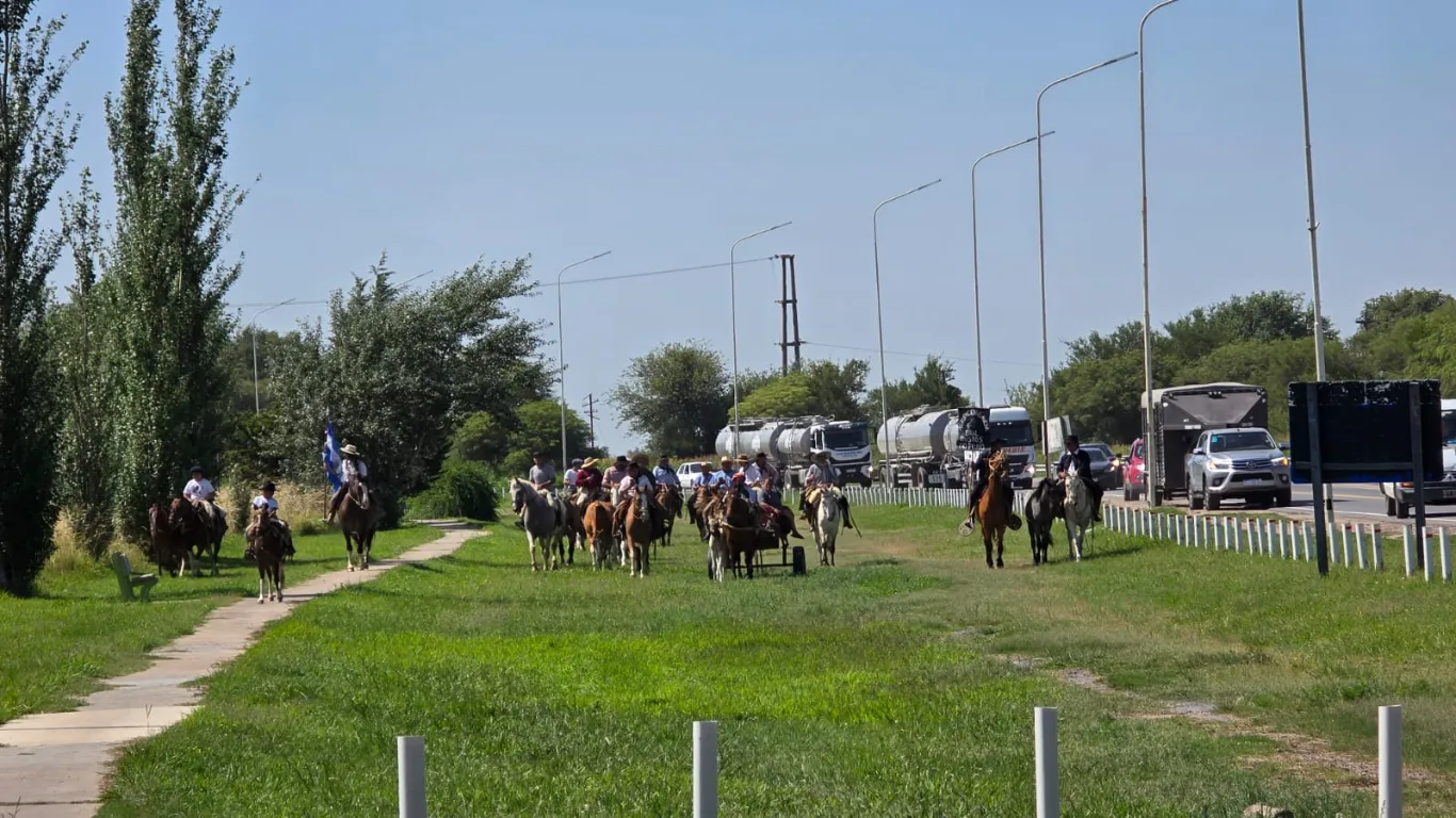 El reconocido payador Nicolás Membriani, junto a Néstor Ramello, Animador de Jesús María y un grupo de acompañantes pasaron por Tío Pujio en su viaje a caballo desde Rojas, provincia de Buenos Aires, hasta Jesús María.